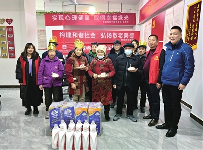 本报讯(记者 王奇峰 通讯员 缪慧)构建和谐社会,弘扬敬老美德。1月10日下午,咸安区浮山街道金桂社区始峰悦府小区邻里驿站热闹非凡,金桂社区新时代文明实践站联合始峰悦府小区党支部、碧桂园服务咸宁分公司为老人举办集体生日会。