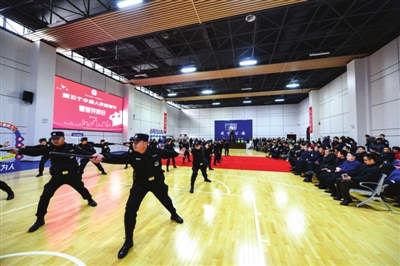 今年1月10日是第五个中国人民警察节。为此,市公安局当日举行警营开放日活动,邀请我市部分人大代表、政协委员、企业家、学生代表和媒体记者等150余名社会各界人士,共同走进实战训练中心,展警营文化、近警民距离、树公安形象,全面增进人民群众对公安工作的理解和支持。