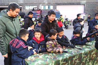 实弹射击兼电子模拟对抗射击馆内,亲身上阵体验真枪、进行模拟射击的小朋友们大呼过瘾。搏击馆内,民警们拳拳到肉的对练让人惊叹不已。