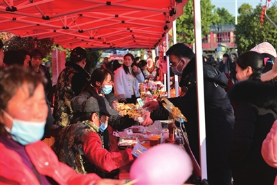 现场,农特产品展销区也是热闹非凡。这里汇聚了来自嘉鱼县各乡镇的农特产品,商家们纷纷拿出自己的看家本领,热情地向村民们介绍自己的产品。村民们则在这些摊位前流连忘返,品尝美食、选购特产,现场一片欢声笑语。