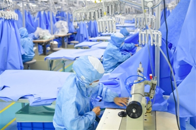 近日,稳健医疗(崇阳)有限公司车间,工作人员加班加点赶制订单。