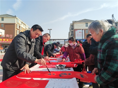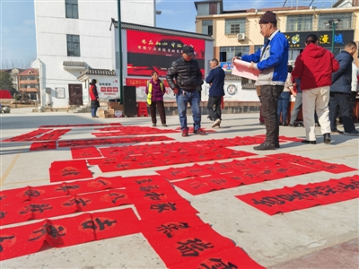 1月19日,著名艺术家董继宁邀请湖北画报社、东湖印社、湖北科技学院专家和咸安区书法家协会名家,在咸安区汀泗桥镇赤岗村开展“不忘初心 牢记使命”迎新春书画名家进乡村送春联活动。28名书画家笔墨不停,为当地群众书写春联近千副、“福”字500个,送去新春祝福。