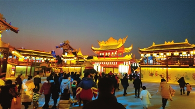 据了解,该景区以名著《西游记》为文化IP为线索,以《猪八戒背媳妇》为主线,打造了一处西游文化天地。另外,该景区春节期间还特别开设了5大非遗秀场,供广大游客前来体验。假日期间,景区游客日均流量在两万至三万人次。 记者 赵忠志/摄