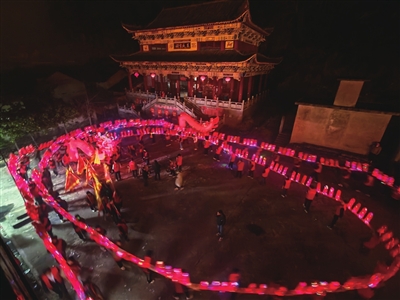 来自江西南昌的游客邓红赞叹道:“第一次观看板凳龙表演,相比较于传统的龙灯,板凳龙的独特之处在于其使用日常家具——板凳作为龙身的组成,这不仅体现了民间智慧,还增加了表演的趣味性和观赏性,这种传统的民俗文化让我感受到了浓浓的年味。”