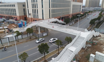 2月6日,记者在市区职院路人行天桥工程现场看到,目前天桥主体结构已经完工,即将进入后期附属工程建设。