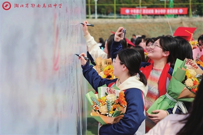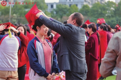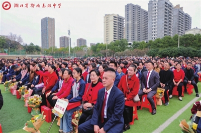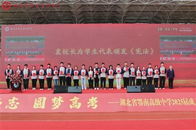 弱冠吉礼,驿路风华沐朝阳。及笄嘉仪,胜日锦绣书华章。 3月1日,距离2025年高考近百天之际,鄂南高中举办了主题为“十八而志,圆梦高考”的成人礼暨高考百日动员大会。活动在热闹喧腾的锣鼓声中拉开帷幕。千余名高三学子身着校服,与家长、教师共同见证了这一人生重要时刻。