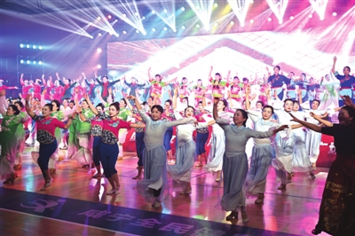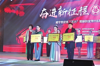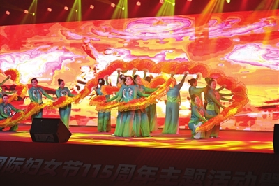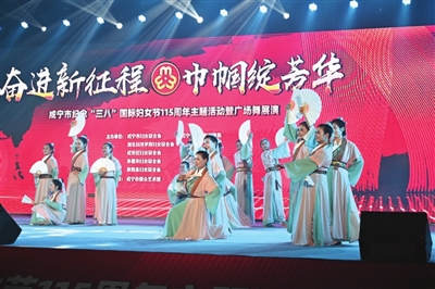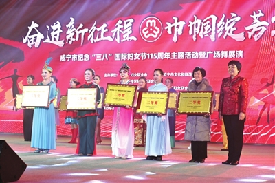 昨日下午,市全民健身中心座无虚席,咸宁市纪念“三八”国际妇女节115周年主题活动暨广场舞展演在这里隆重举行。