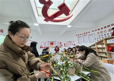 本报讯(记者黄兰芬 刘念 通讯员谭微)为庆祝第115个“三八”国际妇女节,3月6日,在咸安区水厂宿舍小区邻里驿站,永安街道西大街社区举办“凝聚巾帼力量,涵养清廉家风”主题插花活动。