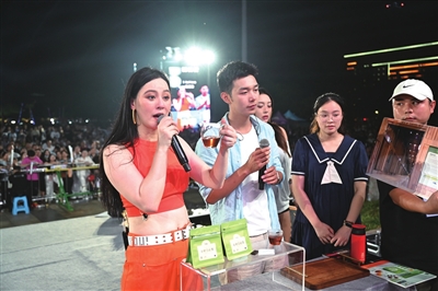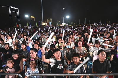 10月4日至5日,市人民广场创新打造“网络名人唐艺+惠民演出+特产展销”户外直播模式,近8万名市民游客现场参与,50余万网友在线同步观看,累计点赞超5000万人次,直接带动消费1100万元,其中直播带货咸宁优品达2.5万单,1万余名省外游客专程来咸品桂赏乐。 (记者赵忠志/摄)
