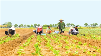 村民鲁万华的60亩甘蓝地位于蔬菜大道旁,匆匆吃过午饭,他就赶到田间移栽种苗。“去年这个时候,地里的菜已经被外地菜商‘包’了——我们的甘蓝品质远近闻名。”鲁万华指着田地旁的物理杀虫灯说,“别小看这盏灯,能管30亩地的病虫害。现在都是绿色防控,我们这里的蔬菜不仅产量高,还品质好、无公害,客商每年早早就上门来预订。”