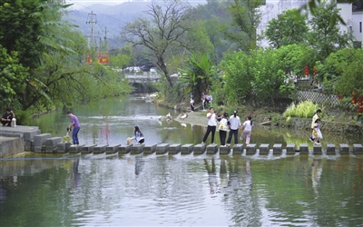 青石板路蜿蜒穿村,游客们漫步其间,尽情感受“小桥流水人家”的诗意。