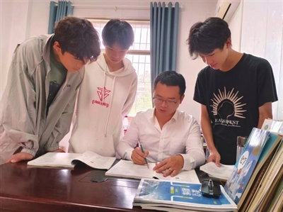 一次网课讲“浮力原理”时,学生李小雨(化名)突然哭了。他暂停讲课,与她私聊,从中得知李小雨父母在外打工,奶奶突然生病,她又怕又急。于是,他挂了电话,骑上电动车,带上常备药赶到李小雨家,给她奶奶量血压、送医拿药,还辅导李小雨完成作业,临走时对李小雨说:“有困难随时打电话,老师都在。”