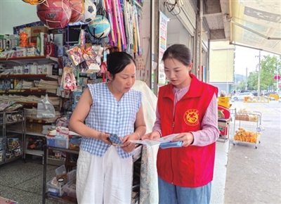 本报讯(记者王奇峰 通讯员胡琼菲)9月29日,咸安区浮山街道长安社区新时代文明实践站聚焦校园周边文化安全防线,组织 “桂乡管家” 深入咸安区实验学校周边书店、文具店、小超市等经营场所,开展 “扫黄打非” 专项宣传活动,从源头筑牢青少年成长 “防护网”。