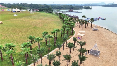 广袤的草场依偎着清澈的湖水,蓝天白云下,游人在如茵绿草与银白沙滩间漫步——这是近日在嘉鱼县蜜泉湖大草原景区呈现的秋日画卷。自10月1日试运营以来,这片融合草原风光与滨水特色的生态景区正成为市民近郊出游的新选择。