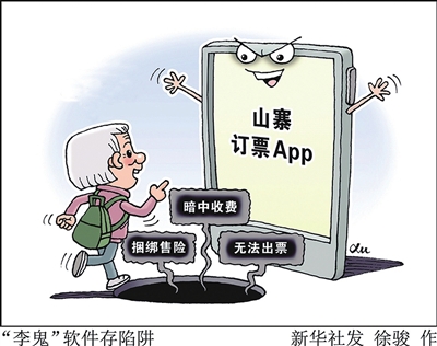 天津的闫大妈刚退休,想多去看看世界,不料在出行购票第一步就遭遇了陷阱。“我下载了应用商店推荐的第一个买票软件,票价跟女儿查询的并不一样。”闫大妈说,“我费了好大劲儿才发现其中的猫腻,原来下载的不是正版App,而且这个软件还自动勾选了保险费用。”