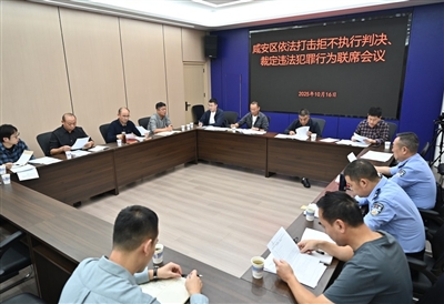 为加强政法各部门协同作战,凝聚打击拒不执行判决、裁定违法犯罪工作合力,昨日,咸安区委政法委召开咸安区严厉打击拒不执行判决、裁定违法犯罪行为联席会议。会上,区法院宣读了联动打击拒执犯罪工作清单,介绍了打击拒执犯罪工作开展情况,分析了当前存在的问题,并提出了相关工作建议。区公安局、区检察院就如何配合打击拒执犯罪进行交流探讨,确保打击拒执犯罪工作取得实效。记者赵忠志通讯员查光鑫
