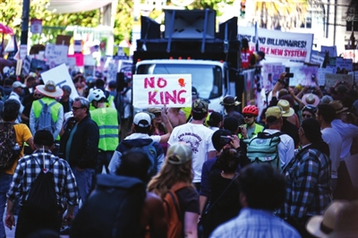 6月14日,美国各地爆发约2000场示威游行,抗议活动以“不要国王”为名,反对特朗普政府移民、卫生、教育、立法等方面政策,共计数百万人参加。