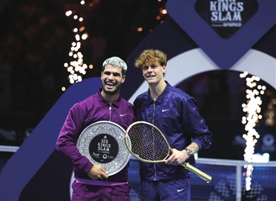 本报综合消息 2025年“六王大满贯”网球表演赛18日晚在沙特阿拉伯上演巅峰对决,世界排名第二的意大利名将辛纳直落两盘击败世界排名第一的西班牙名将阿尔卡拉斯,成功卫冕。
