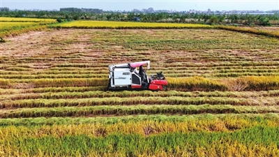 10月14日,在潘家湾镇东村村的田野上,目之所及满是金黄,沉甸甸的稻穗压弯了腰。农机手正驾驶着收割机在田间往复穿梭,抓紧晴好天气抢收秋粮,确保颗粒归仓。田间地头,机器轰鸣声与农户的欢笑声交织,展现出一幅动人的丰收景象。