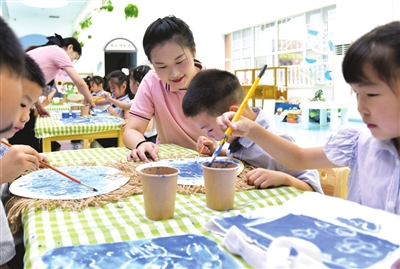 日前,市直机关幼儿园二园的小朋友们在老师的带领下学习蜡染。
