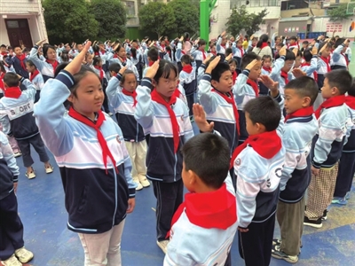 本报讯(记者 熊大平 通讯员 韩红 杨丽媛)为传递少先队精神,营造积极向上的校园氛围。10月14日,咸宁市第二小学举行了“强国复兴有我·争做新时代好队员”新队员入队仪式活动。出队旗、唱队歌、庄严宣誓……二年级共计271名新队员光荣加入了中国少年先锋队。随后,五年级的优秀少先队员代表为新队员佩戴上人生第一条鲜艳的红领巾,在互敬队礼中传递荣光与责任。