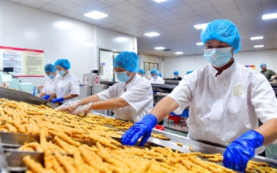 该公司主要生产小麻花,在传统工艺的基础上创新改良,研发出多种独特口味的小麻花,深受市场欢迎。眼下,小麻花进入消费旺季,公司订单量持续攀升,预计年产值5000余万元。