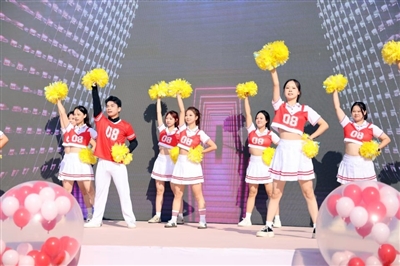 活动现场,嘉宾照片墙、精致甜品等布置搭配粉红色主基调,甜蜜感十足,男女嘉宾一张张青春洋溢的脸庞满是期待。9时许,啦啦操活力登场,瞬间点燃全场热情。随着地爆球启动,嘉宾共同放飞粉色气球,音乐与欢呼声交织,活动拉开帷幕。