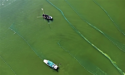 10月13日,崇阳县石城镇白螺村葛墩养鱼专业合作社鱼塘基地,渔民们正在下网、赶鱼。据了解,该合作社目前建有鱼塘300余亩,主要养殖鲈鱼、鳊鱼、花鲢等,年产鲜鱼20余万公斤,产值500多万元。眼下进入鲜鱼上市期,渔民们穿梭鱼塘,一派繁忙的丰收景象。