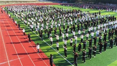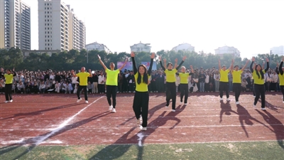 集体韵律操和教师工间操展示,打响了比赛的前奏。律动的音乐响起,瞬间点燃了整个绿茵场,随着明快的旋律,同学们将每一个动作都化作了力量的雕塑。手臂的挥舞划破空气,脚步的踏动铿锵有力,眼神的交汇传递着默契与信念。一曲结束,平日里手持粉笔的老师们,换上了轻便的运动装,精神抖擞地步入赛场中央,他们用一丝不苟的转身、踢腿,表达着对生命的热情,也向同学们传递着“健康工作五十年,幸福生活一辈子”的绿色教育理念。