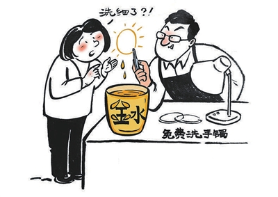浙江的王阿姨在集市上免费洗金镯,谁知摊贩竟将金镯放入“王水”中,一下“洗”掉了5.33克。王阿姨发现金镯变软变轻后,立即报警,目前摊贩已被刑拘。免费的往往是最贵的,对所谓的“免费服务”一定要提高警惕,避免上当受骗。(据新华网)