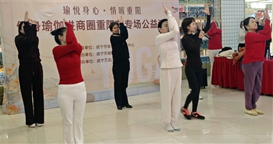 10月26日,市体育事业发展中心联合市瑜伽健身协会在咸宁万达广场开展“瑜悦身心·情暖重阳”健身瑜伽进商圈重阳节专场公益活动,以健身瑜伽为纽带,传递尊老敬老爱老的社会风尚。 (记者吴青朋通讯员吴雨茜)