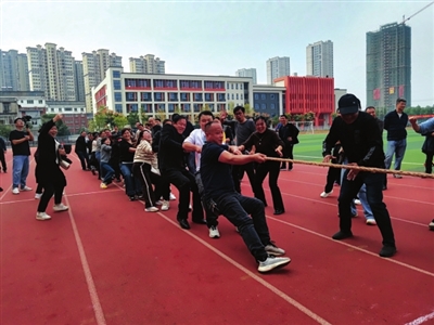 本届运动会的一大亮点在于师生同场竞技。10月29日,在学生赛事激烈进行之际,穿插举行的教职工趣味运动会将现场气氛推向高潮。拔河比赛的齐心合力、两人三足的默契配合、多人持竿跑的步调一致,生动展现了师生互动、共享运动的欢乐场景。