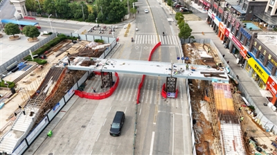 据了解,该天桥主桥采用钢箱梁结构,全长39米,桥面宽5.3米,净宽5米;坡梯道采用钢筋混凝土板梁,全宽3.3米,净宽3米,共设4个梯道,计划今年11月底建成投用。项目的建成将提升市区基础设施水平,缓解交通拥堵状况,为市民打造更加安全便捷的出行环境。
