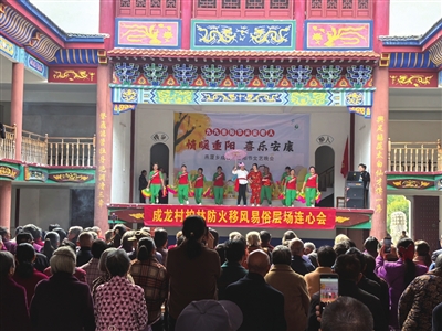 10月29日,通山县燕厦乡成龙村内欢声笑语,其乐融融。一场以“情暖重阳,喜乐安康”为主题的敬老活动温暖举行。村民们自发排演的节目赢得了满堂喝彩,情意满满的“敬老宴”更让300多位老人倍感温馨。这是该村第四年用这样的方式,传递对长者们的温情与敬意。 (记者 鲁芳 通讯员 钱希)