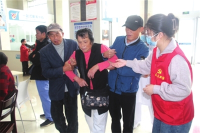 来自咸宁市第一人民医院的志愿者们,在门诊大厅内积极引导分流人群、耐心协助市民填写信息、贴心搀扶行动不便的老人。他们忙碌的身影和温暖的微笑,成为了现场一道亮丽的风景线,有效维护了诊疗秩序,也让前来问诊的市民倍感安心与温暖。