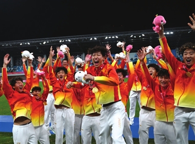帮助湖北队打入“绝平”进球的孙康博颁奖仪式后笑着拿着金牌,一直感叹“好重”,“很开心拿下这场胜利,这是我们全队上下共同努力的结果。虽然过程很艰难,但我们来就是奔着金牌来的”。