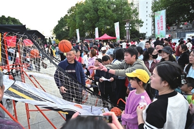 当日下午3时,活动在激情澎湃的趣味运动会中点燃热情。首场拔河比赛瞬间引爆现场气氛,来自咸安区温泉街道和浮山街道的6支代表队全力以赴,展开力量与协作的较量。场边助威声、呐喊声此起彼伏,汇成一片欢乐的海洋。紧随其后的跳绳、踢毽子等趣味项目也依次展开,吸引了不同年龄段的市民积极投入,在竞技与欢笑中体验运动的乐趣。