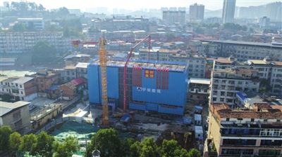 11月15日,记者在咸安区永安街道南大街社区红仓库小区危旧房改造项目现场看到,2号楼完成主体结构封顶。