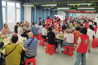 “今天和姐妹们一起插花,心里真舒坦,把这些鲜花摆在家里,心情都会变好。”近日,咸安区浮山街道盘泗洲社区“暖心家园”内花香四溢,刚参加完插花活动的李阿姨手捧花艺作品,笑容格外灿烂。