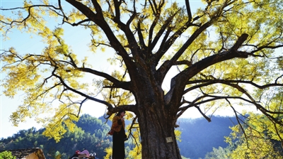 ??? 11月19日,通山县程家垅,一棵历经八百年风霜的银杏树,再度披上璀璨金装。金色阳光洒落,每一片叶子都如鎏金般闪烁,熠熠生辉。这棵古树承载着数代人的集体记忆,遒劲枝干上悬挂的保护铭牌,不仅标注着它的树龄,更镌刻着一份守护自然与历史的沉甸甸承诺。闻讯而来的人们在树下驻足流连,用镜头定格这满树金黄的秋日胜景,也留住与八百年时光温柔对话的珍贵瞬间。 (记者毛亚轩 陈诗傲 全桢)