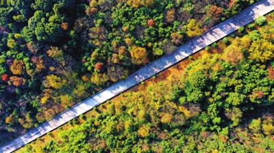11月16日,潜山国家森林公园层林尽染。漫山的林木褪去翠绿,迸发出红、黄、橙、紫等多重色彩,似大自然肆意挥洒的调色盘。市民三五成群,或悠然漫步,或驻足赏景,沉醉在这如诗如画的美景之中。 (记者夏正锋)