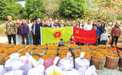 11月23日清晨,咸宁市广东商会组织的爱心车队近30名党员、会员,驱车80公里前往山口村进行实地采摘。