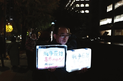 寒风中,人们手举标语牌,“不要战争,守护和平!”“高市必须撤回言论!”“我们不需要煽动战争的首相!”……扩音器里不断传来呼喊声。