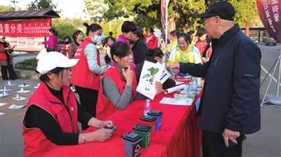 舞台周围的便民服务集市涵盖就业招聘、健康义诊、消防宣传、反诈宣传与垃圾分类宣传等多个领域。义务理发区的志愿者技艺娴熟,理完发的居民马云荣连连称赞:“清爽多了,整个人都有精神了!”“利刃便民”区砂轮声阵阵,磨刀师傅将居民的菜刀、剪子磨得锃亮锋利;消防人员发放科普日历,赤壁市委办工作人员宣传国家安全知识,垃圾分类套圈活动别开生面……居民们边享受服务边学知识,手里还拿着各式小礼品,笑逐颜开。