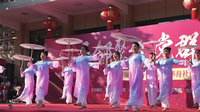 “家门口就是舞台,身边人就是主角。”主舞台上,社区居民演员们正认真彩排,抬手转身间洋溢着活力。舞台一侧,身着宝蓝色队服的“相约华舟歌舞队”合唱团加紧排练《歌唱祖国》,华舟社区居委会委员沈星彤悉心指导队形动作。75岁的队员、枥山小区党支部书记李福珍昂首挺胸,眼中闪烁着自豪:“我们爱唱红歌,现在生活无忧,老有所乐!”