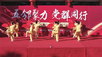 下午3点,活动正式拉开帷幕。由居民自编自导自演的12个节目轮番上演,融合民乐、戏曲、舞蹈、小品等多种形式,吸引百余群众驻足观看。气势恢宏的锣鼓表演拉开序幕,高杆舞凤与舞绸龙点燃全场气氛。《太极扇》刚柔并济,尽显传统魅力;二胡齐奏《良宵》悠扬动人,有居民现场点播《梁祝》;《年轻的朋友来相会》旋律响起,大家情不自禁打拍、跟唱,眼中闪耀着“岁月流逝,青春不老”的动人光彩。活动中穿插的党建知识有奖问答环节接地气、奖品丰富,现场气氛热烈,居民踊跃参与。