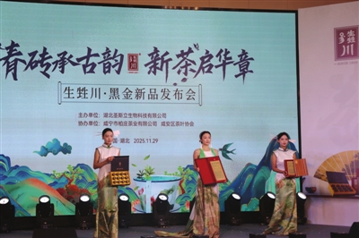 本报讯 (记者陈婧 特约记者李婷婷 通讯员杨雄 余佑文) 11月29日,2025年“生甡川·黑金”新品发布会在咸安区隆重举行。活动以“青砖承古韵·新茶启华章”为主题,政企协三方联动,共话四百年老字号“生甡川”的传承与创新,标志着咸安茶产业迈入“守正创新、共赢未来”的新阶段。