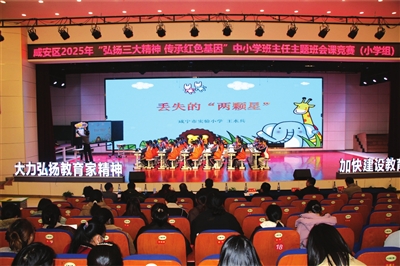 为深入贯彻立德树人根本任务,推动社会主义核心价值观融入课堂实践,提升班主任德育工作水平,12月2日至3日,咸安区教育局在咸宁市实验小学报告厅成功举办2025年度“弘扬三大精神 传承红色基因”中小学班主任主题班会课竞赛(小学组)。来自全区16所小学的优秀班主任同台竞技,集中展示了新时代班主任的育人智慧与专业风采。