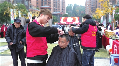 下午4时30分,活动正式拉开帷幕。“健康社区行”义诊服务与充满烟火气的“社区文明集市”同步向居民开放。集市上,家电维修、社保卡更换、金融安全宣传等便民服务摊位前秩序井然;绿植书刊、手工编织、特色卤味等展示区洋溢着浓郁的文化气息。特别设置的“文明小货郎”服务区备受青睐,理发、口腔检查、血压检测、推拿按摩、清洗眼镜、球类充气等贴近生活的服务,让居民感受到便利与温暖。而《文明行为促进条例》宣传、爆米花试吃、手工编绳、非遗船舶模型演示等项目,则巧妙融合文明倡导与文化体验,吸引众多居民驻足参与。