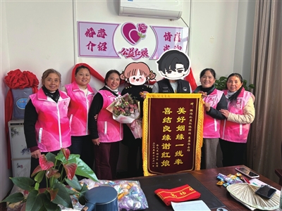 12月5日,咸安区横沟桥镇一对经公益红娘驿站牵线的恋人,送锦旗致谢。两人曾因忙事业耽误婚恋,驿站免费为其登记信息、精准匹配并贴心撮合,终促成姻缘。该驿站2025年8月运营,已登记180条单身青年信息,成功牵线3对,破解婚恋难题。 (通讯员 鲁敦喜)